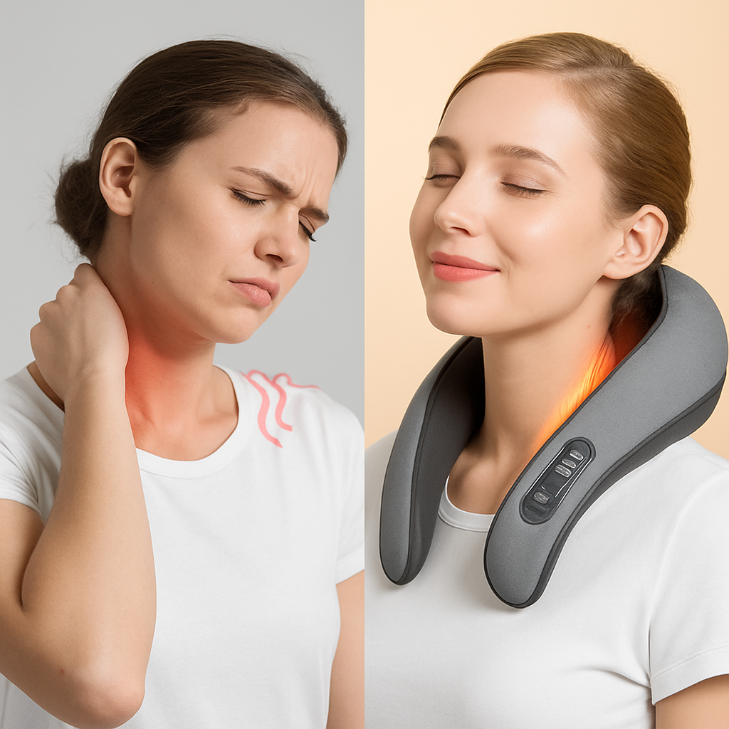 Transform your daily routine with effortless relief. Our Neck Massager is lightweight, portable, and designed for ultimate comfort. Whether you're at home, in the office, or on the go, simply wear it and let the tension melt away.